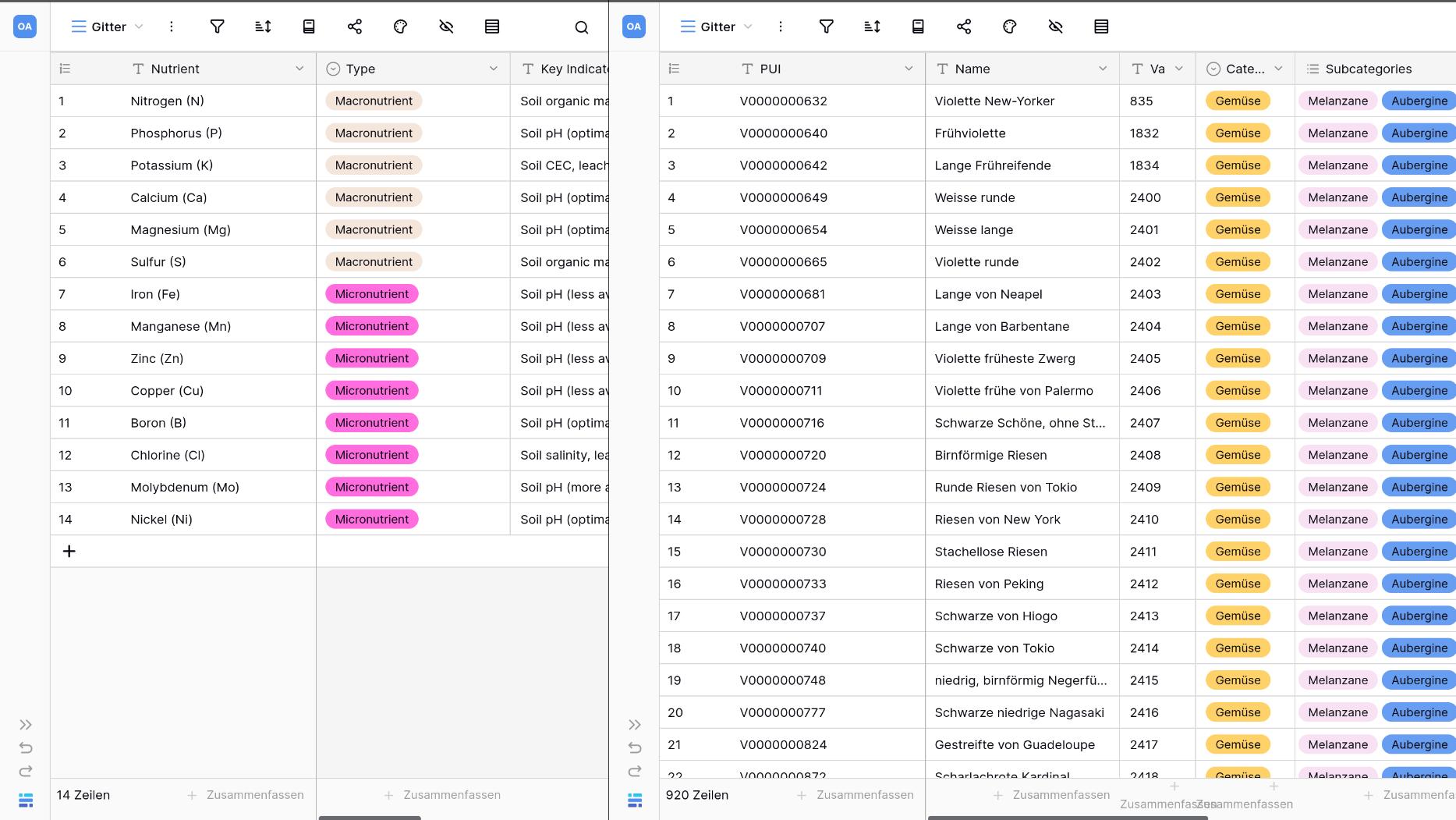 Initial database created. Sources: Gemüseinventar NAP32, Cohere, Wikipedia